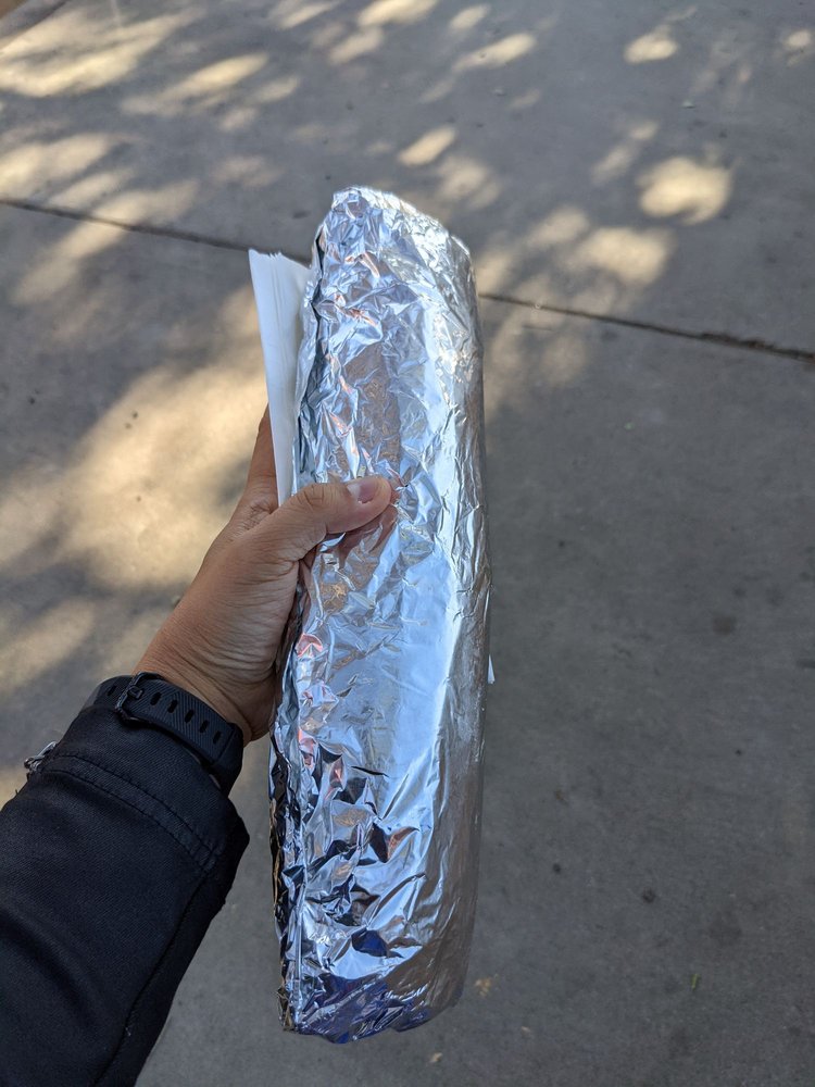 Breakfast burrito cooked in eggs, hashbrowns, w pico tomatoes,