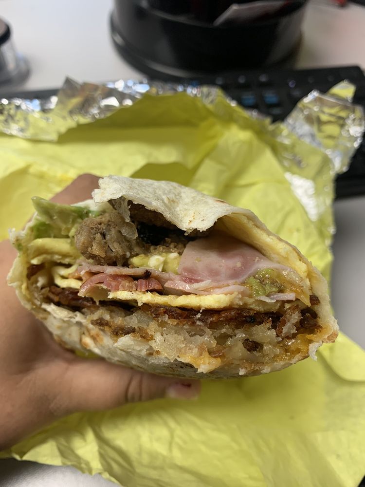 Mexican chorizo sausage, eggs layered wham, cheese on a custom toasted bun